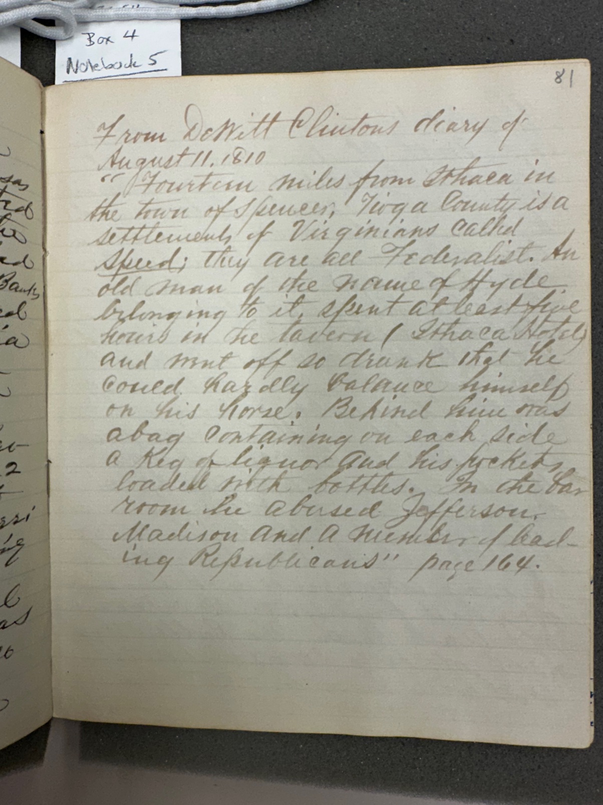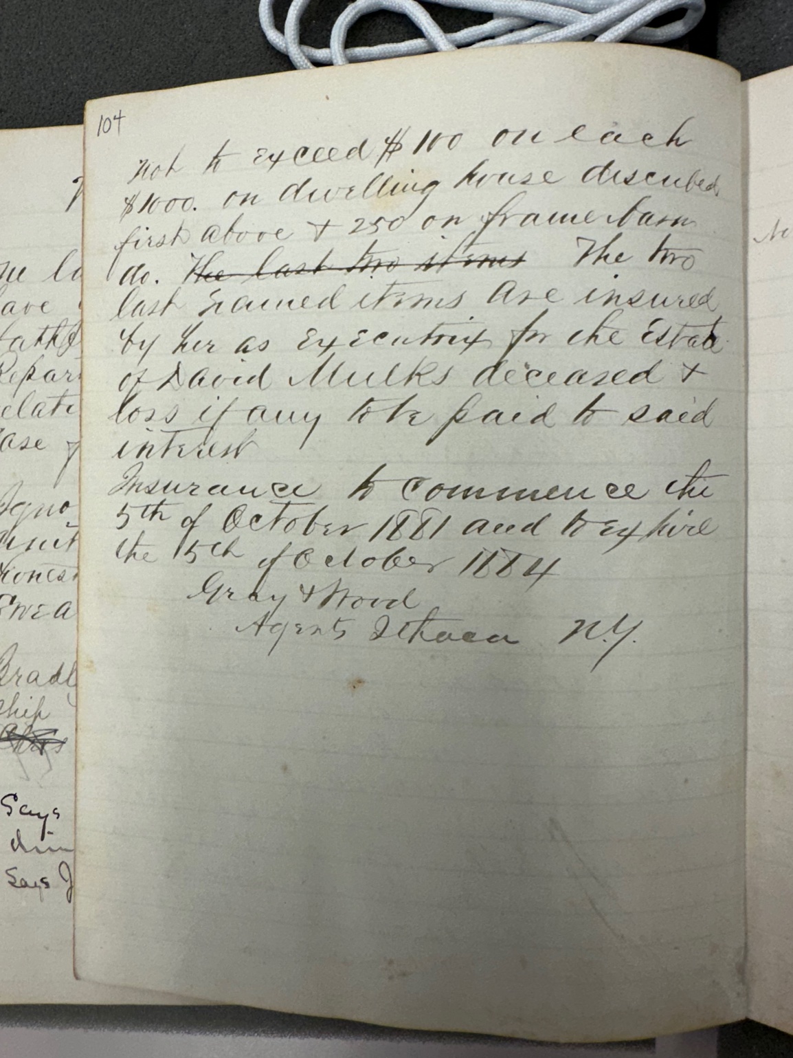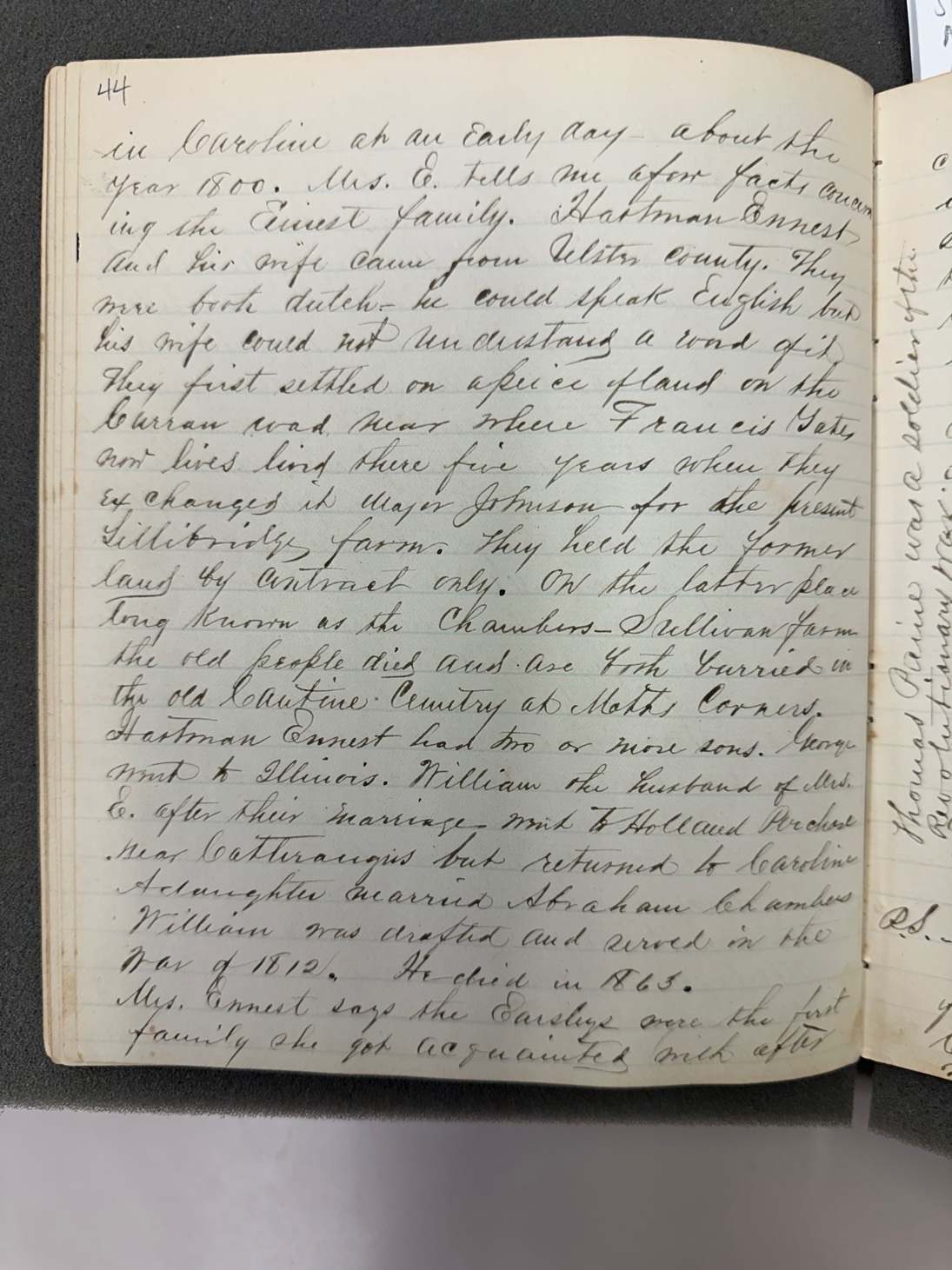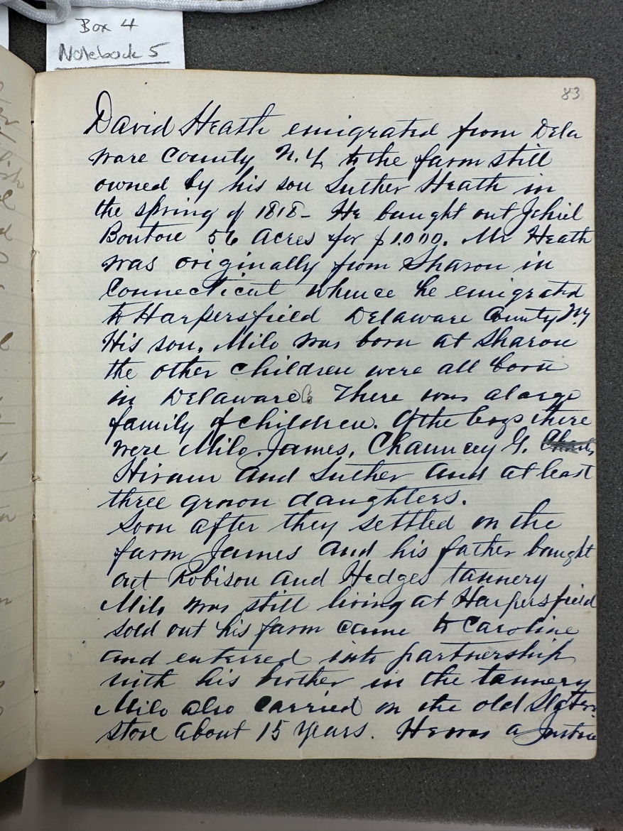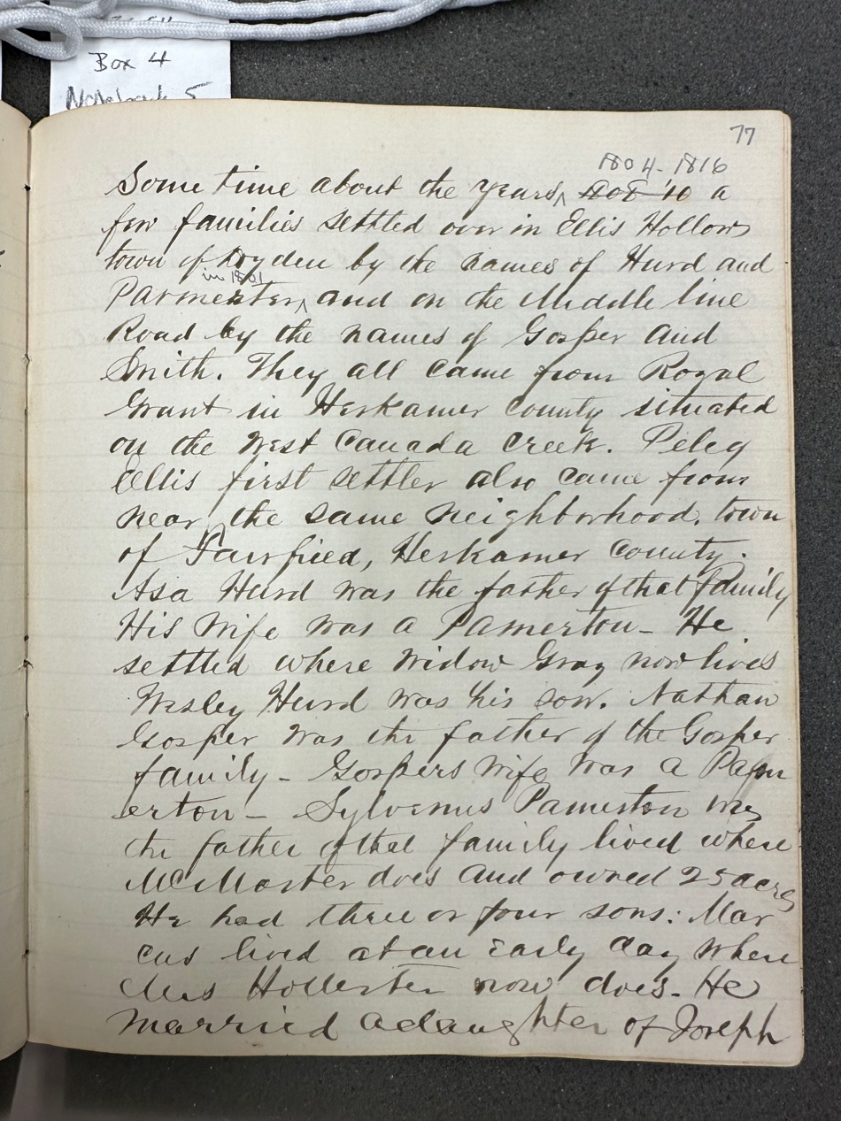 The father of Dennis Babcock was Caleb Babcock. He owned a large farm where Wessel Meddaugh now lives but having a bad title was obliged to relinquish it and give up the land. He supposed he had it all paid for + was out of debt. He died poor. Judge John Ellis afterward owned it and lived there for a time. Henry Krum told me this 12/17/81