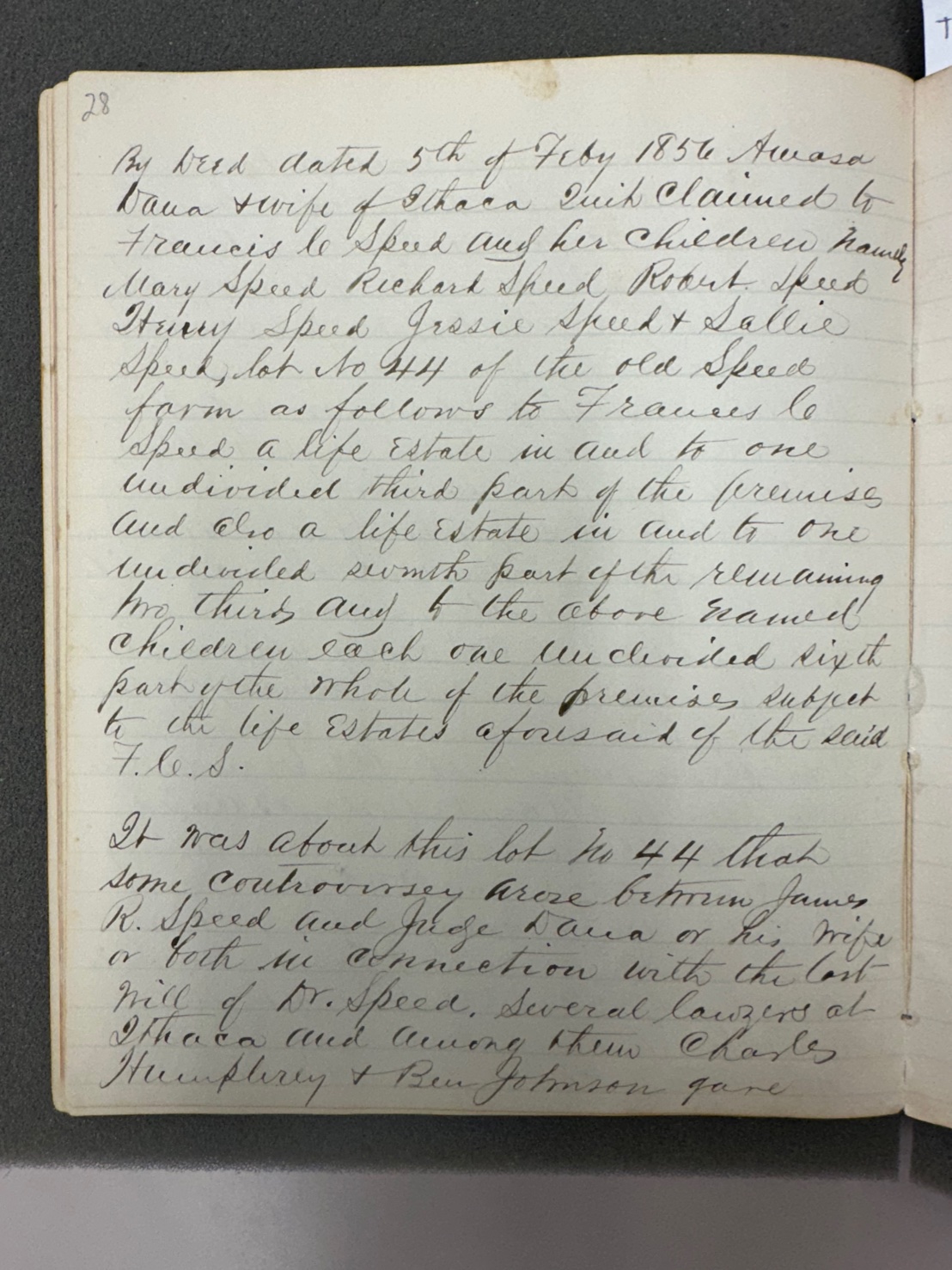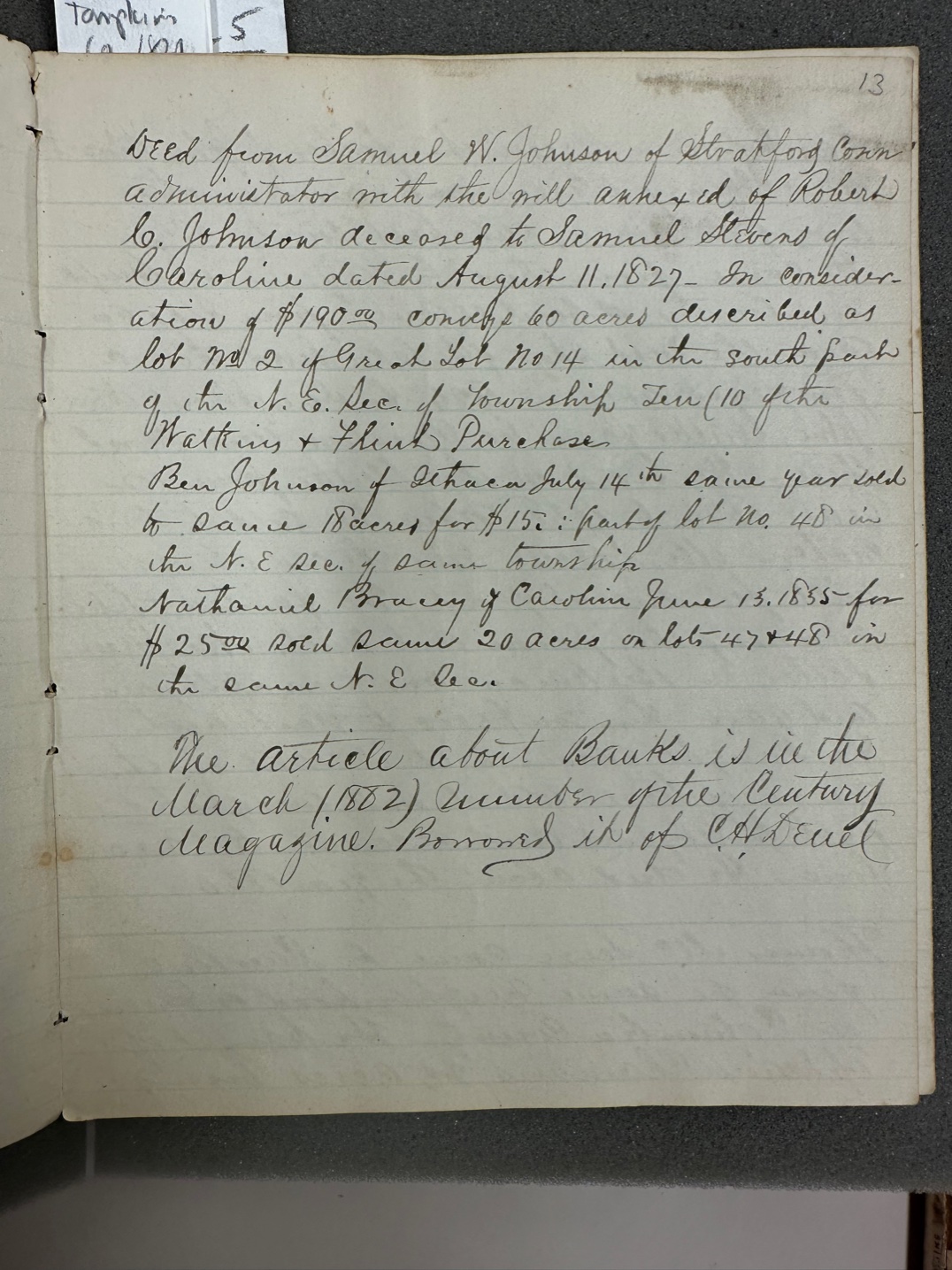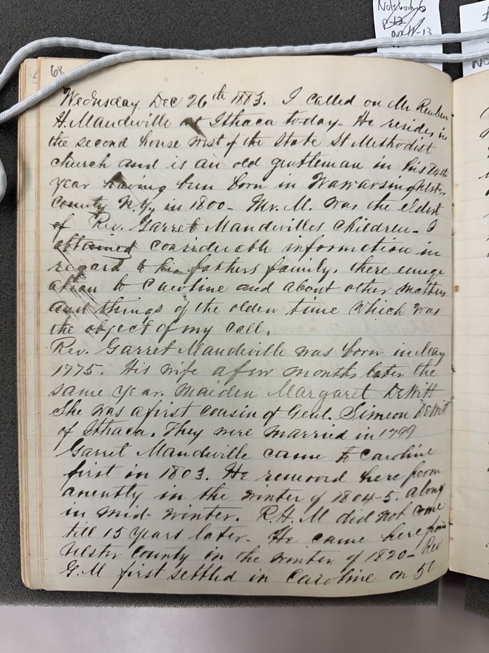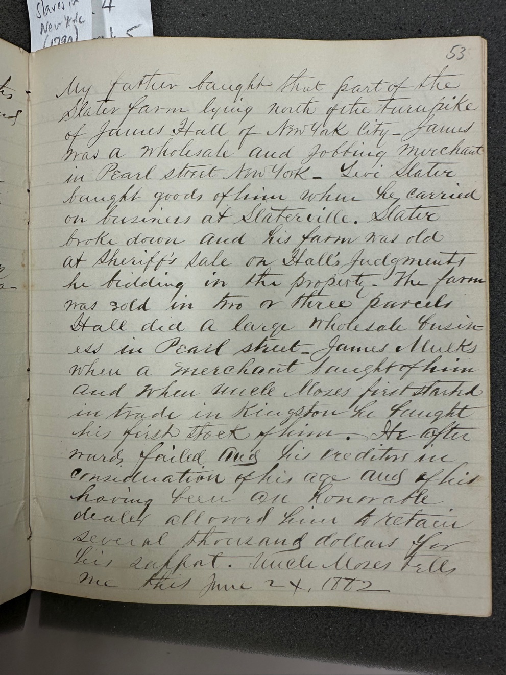 The father of Dennis Babcock was Caleb Babcock. He owned a large farm where Wessel Meddaugh now lives but having a bad title was obliged to relinquish it and give up the land. He supposed he had it all paid for + was out of debt. He died poor. Judge John Ellis afterward owned it and lived there for a time. Henry Krum told me this 12/17/81