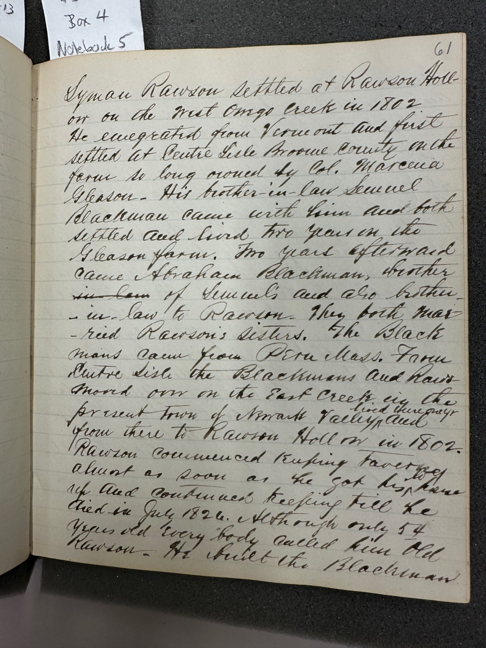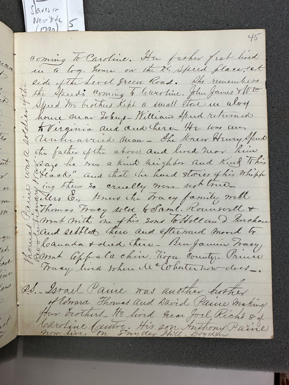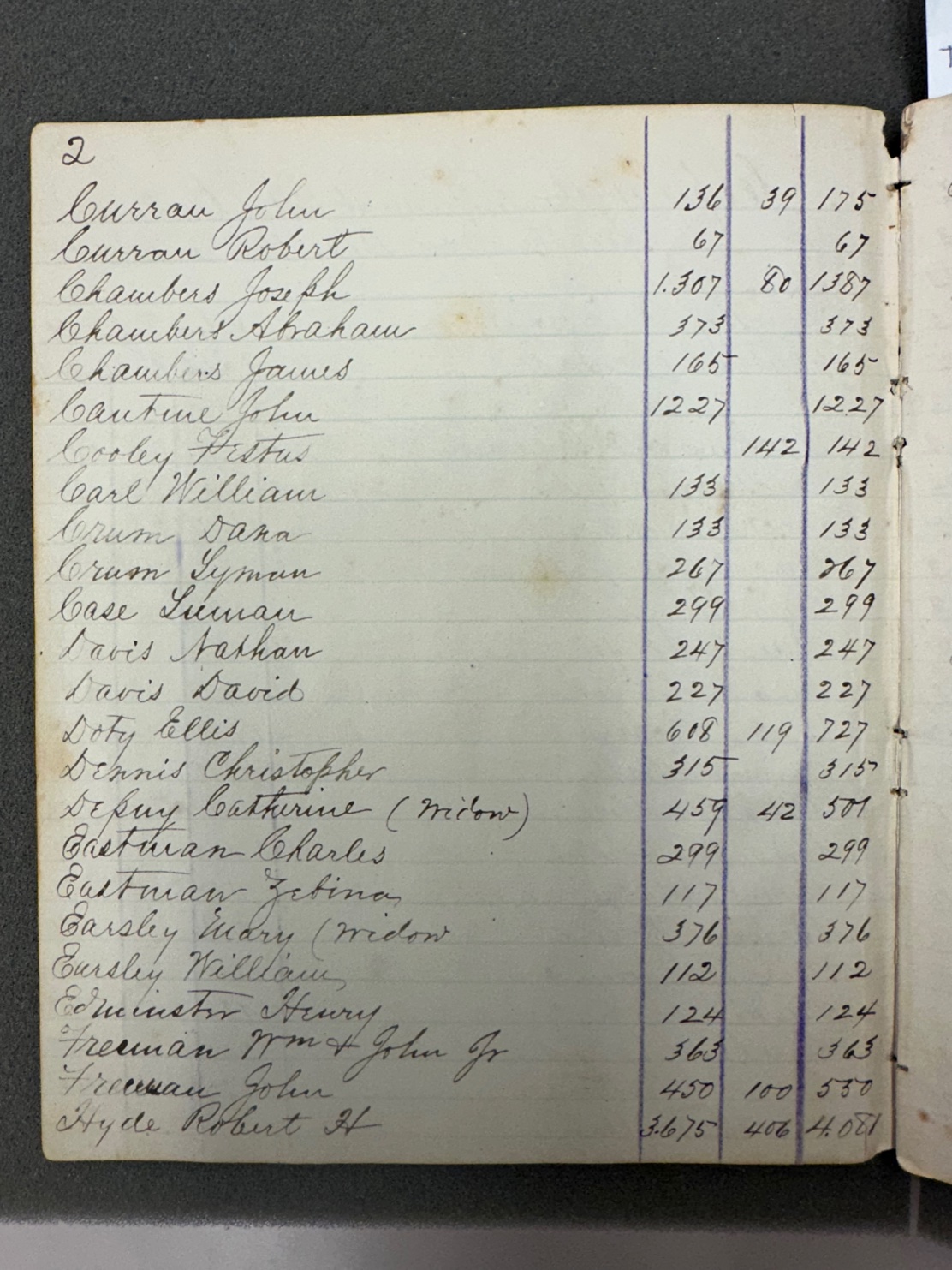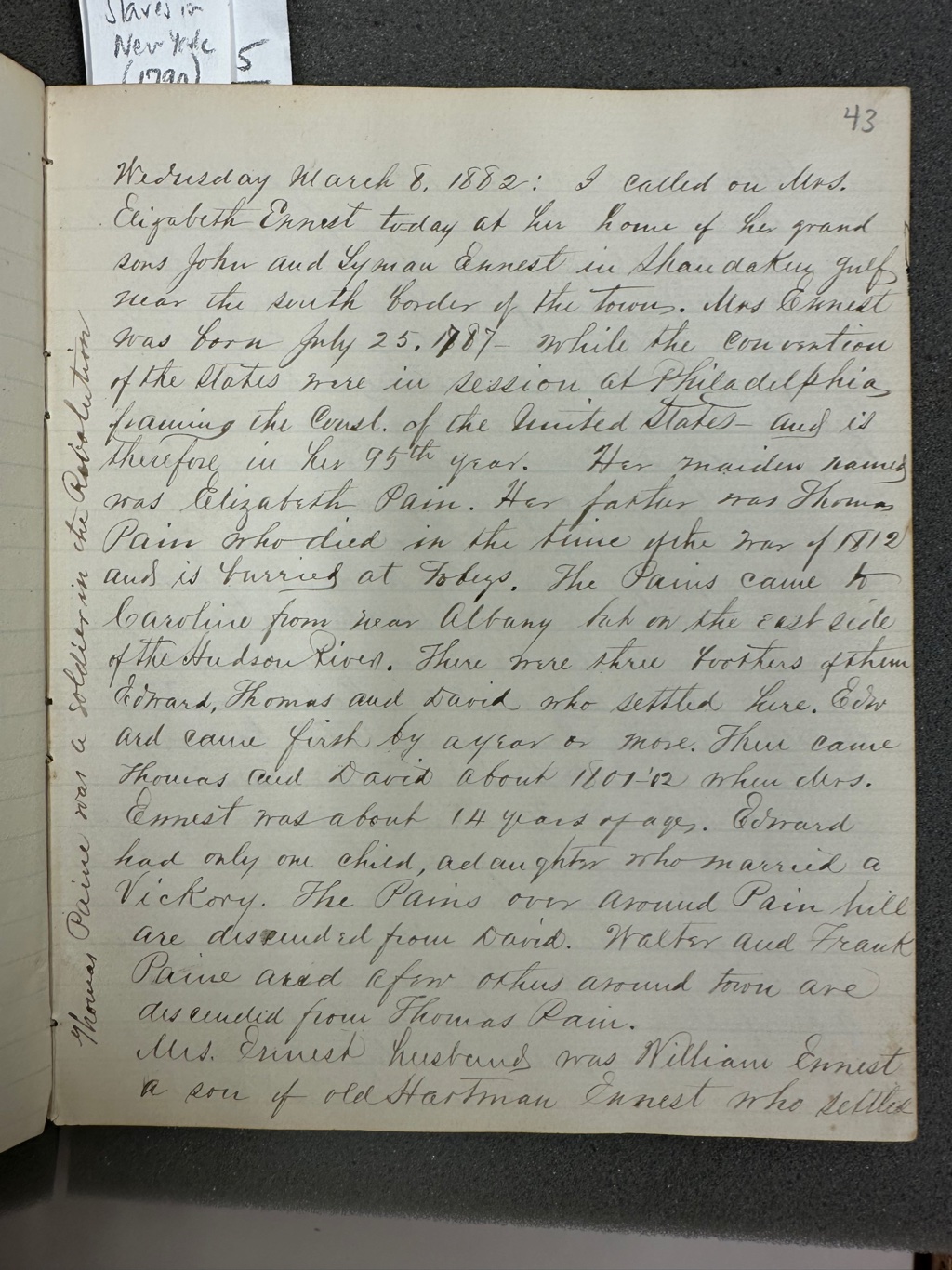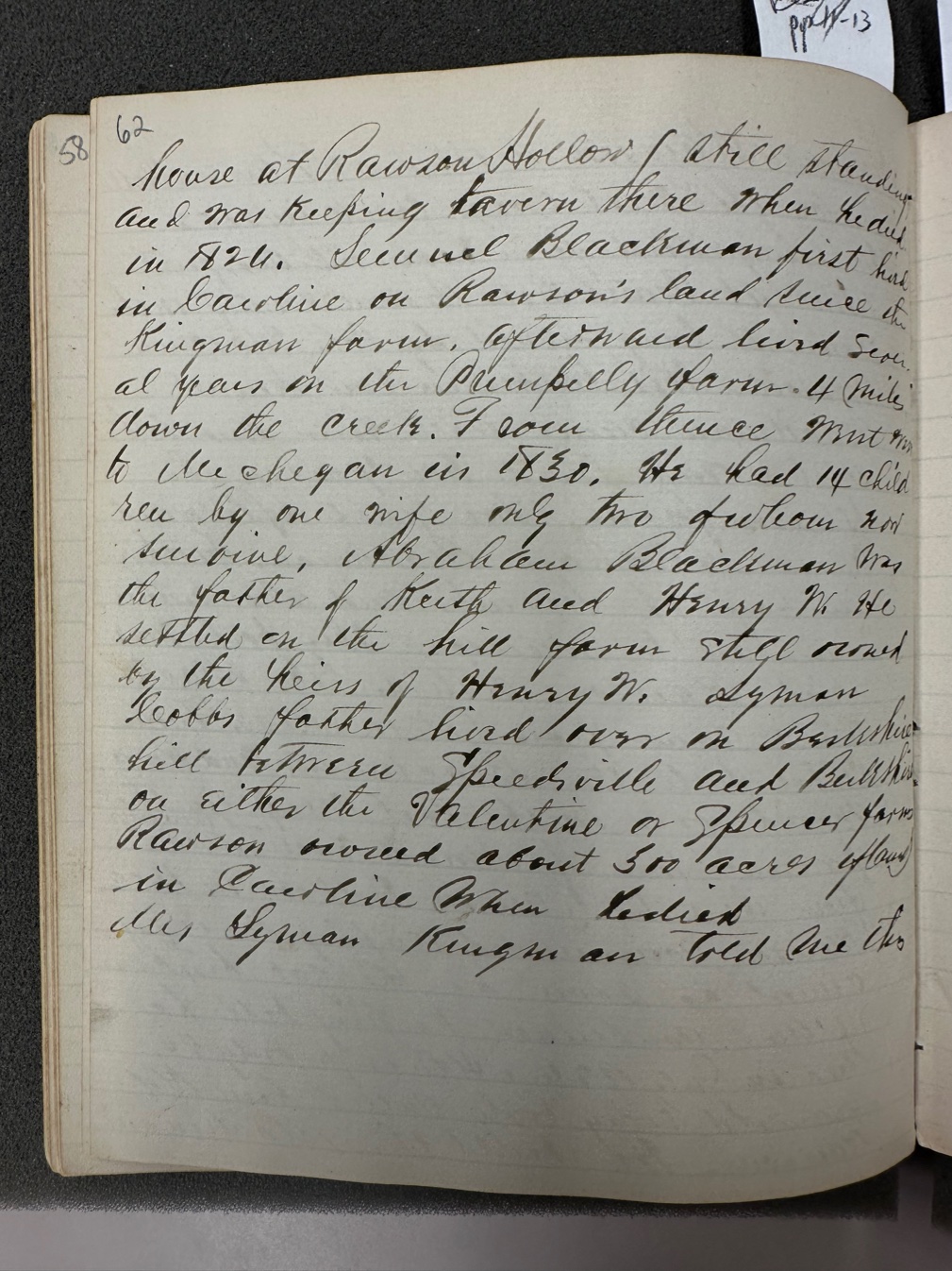 The father of Dennis Babcock was Caleb Babcock. He owned a large farm where Wessel Meddaugh now lives but having a bad title was obliged to relinquish it and give up the land. He supposed he had it all paid for + was out of debt. He died poor. Judge John Ellis afterward owned it and lived there for a time. Henry Krum told me this 12/17/81