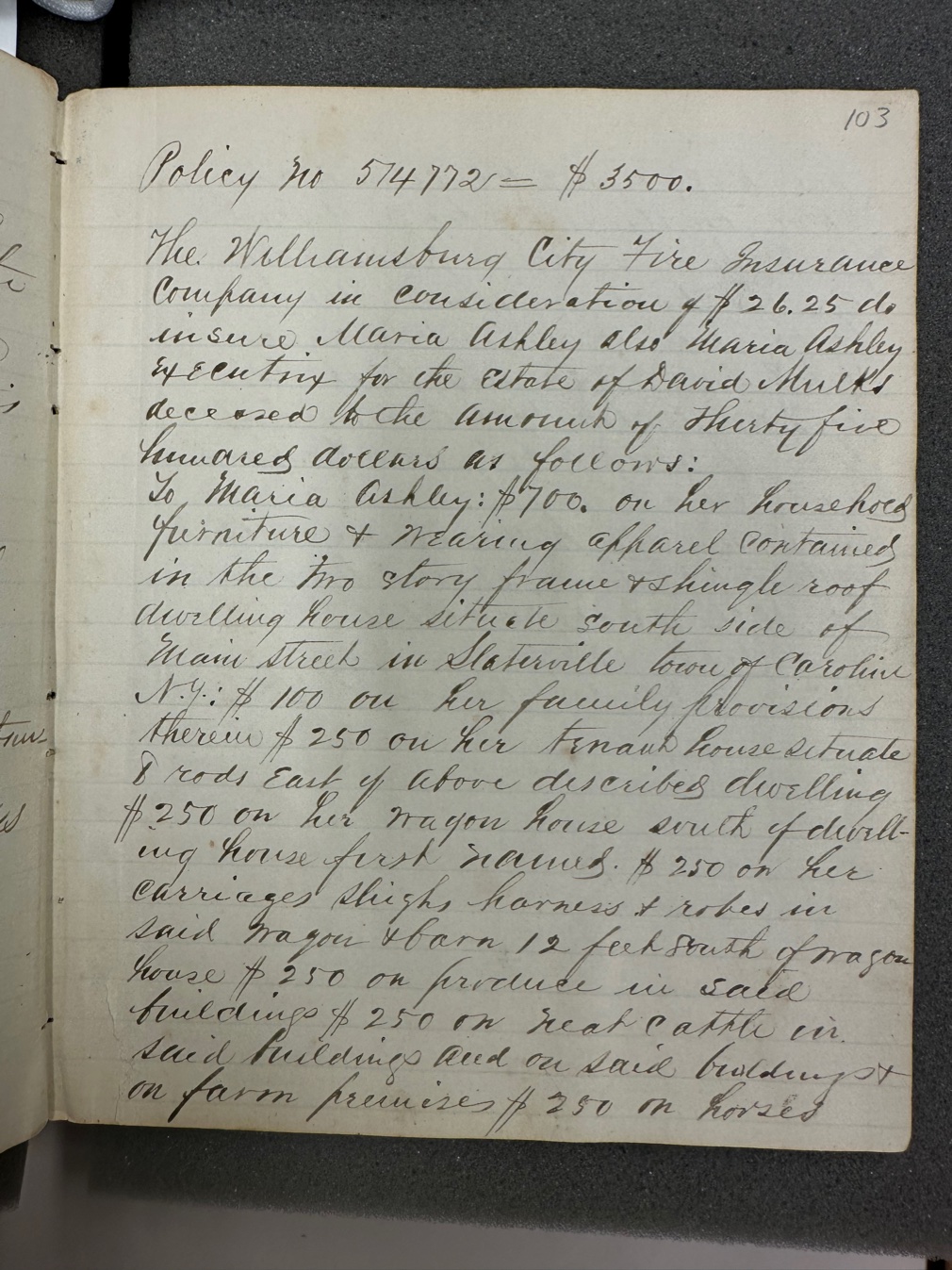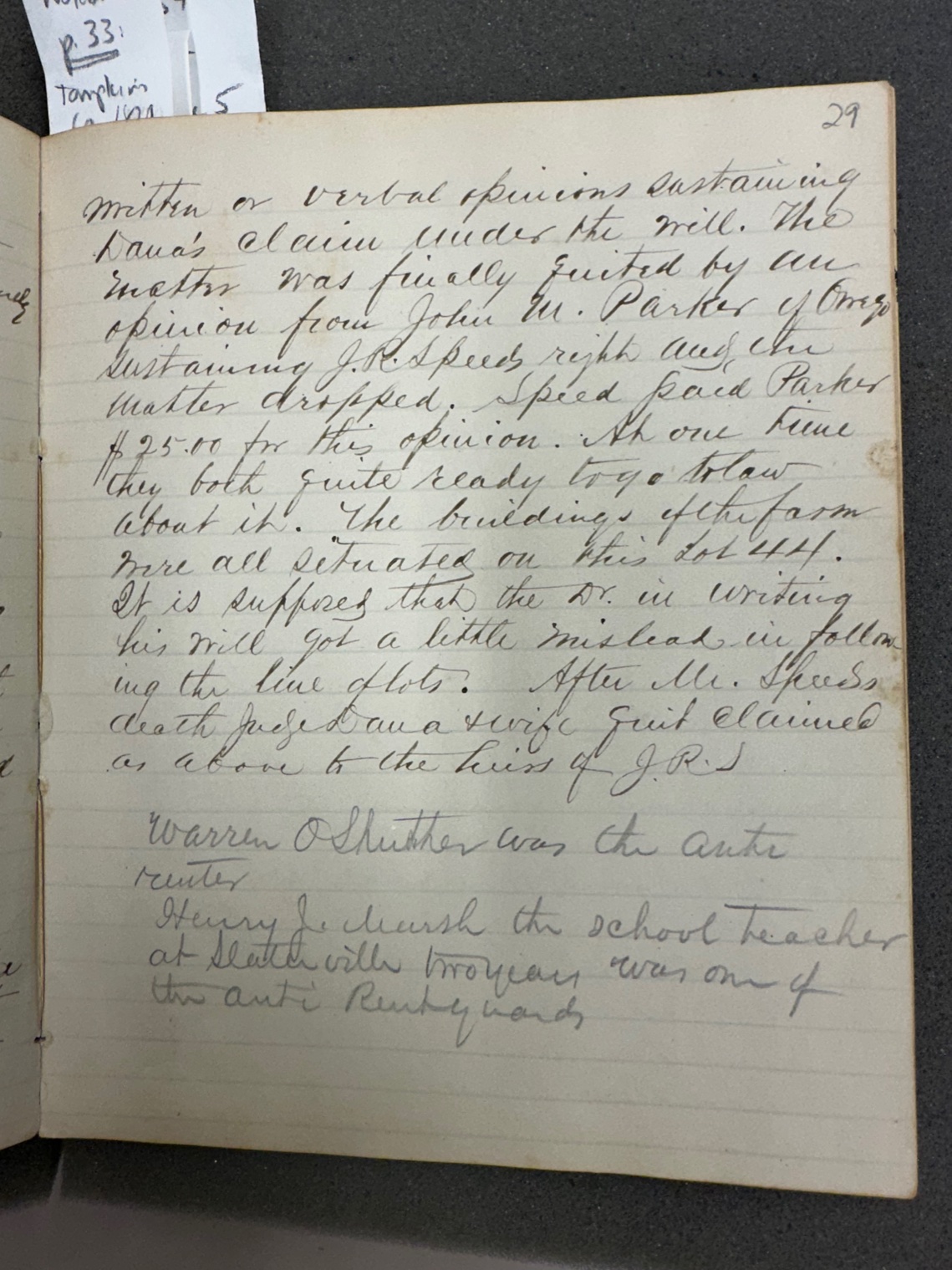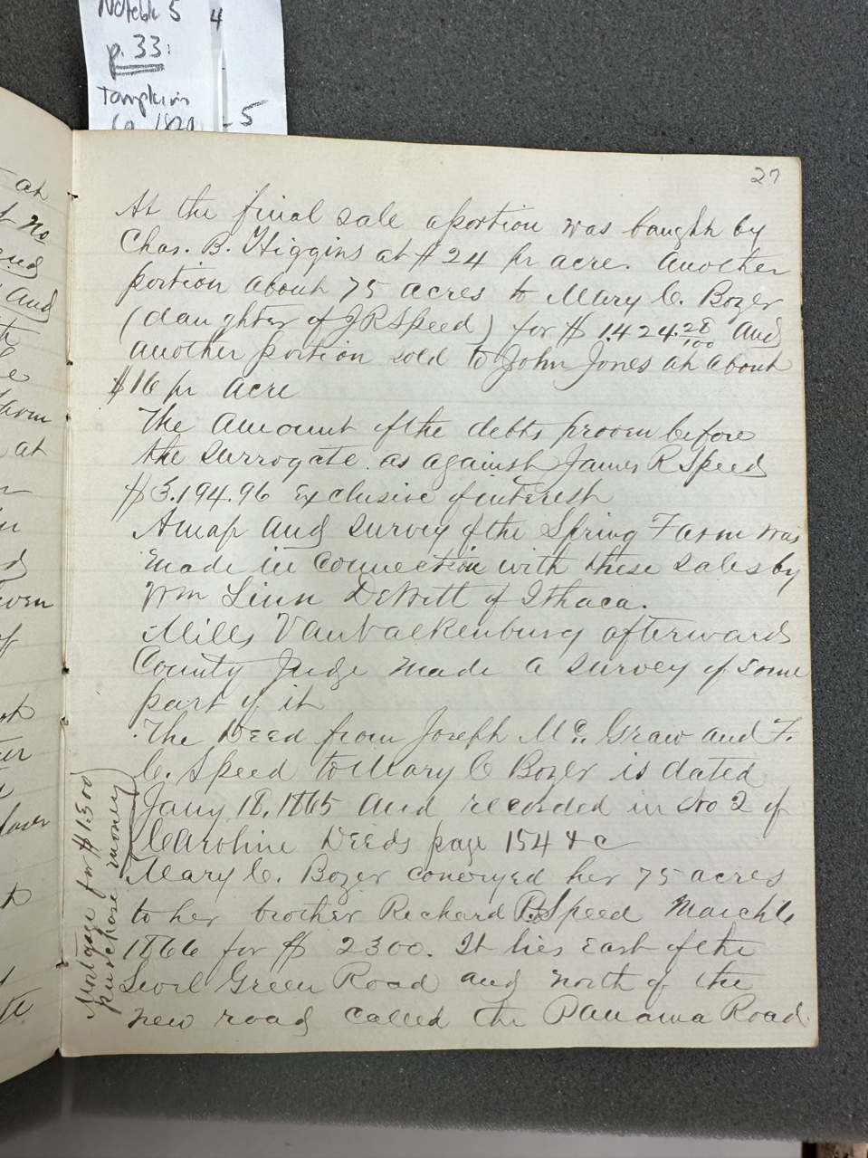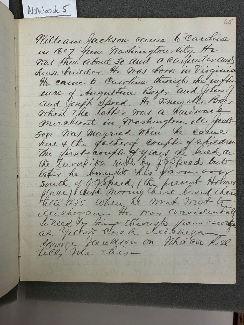 The father of Dennis Babcock was Caleb Babcock. He owned a large farm where Wessel Meddaugh now lives but having a bad title was obliged to relinquish it and give up the land. He supposed he had it all paid for + was out of debt. He died poor. Judge John Ellis afterward owned it and lived there for a time. Henry Krum told me this 12/17/81
