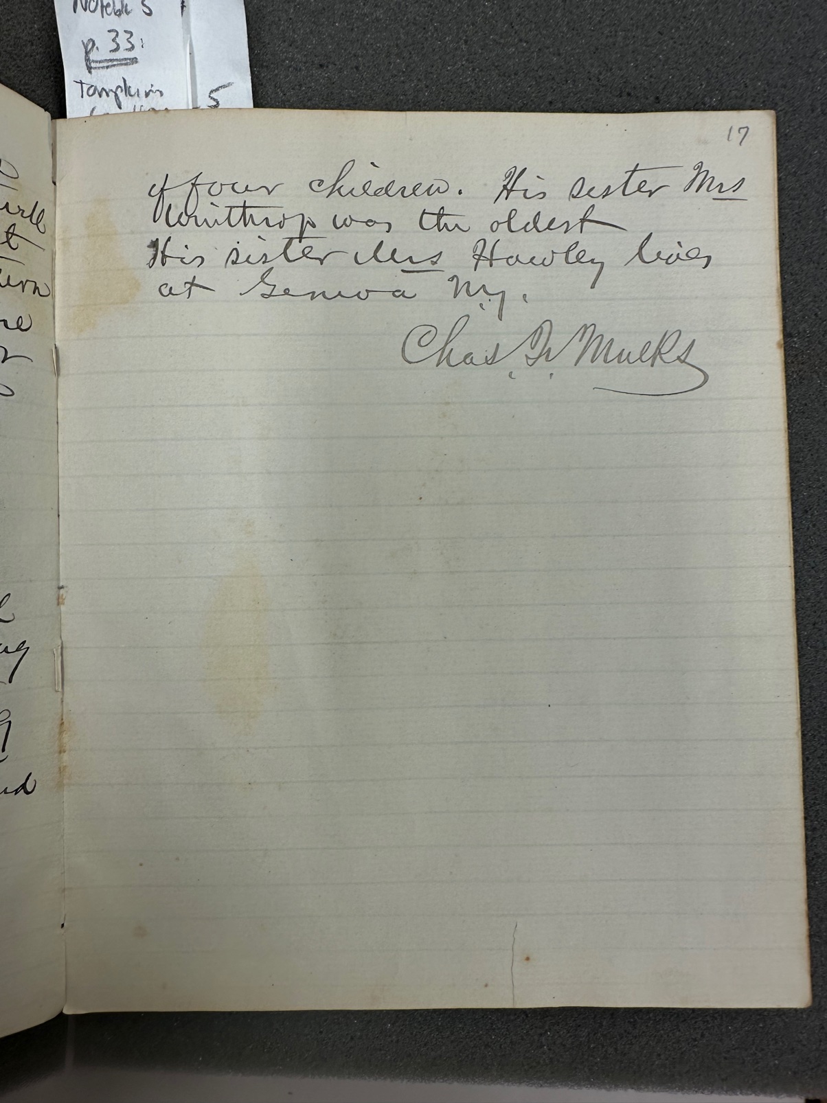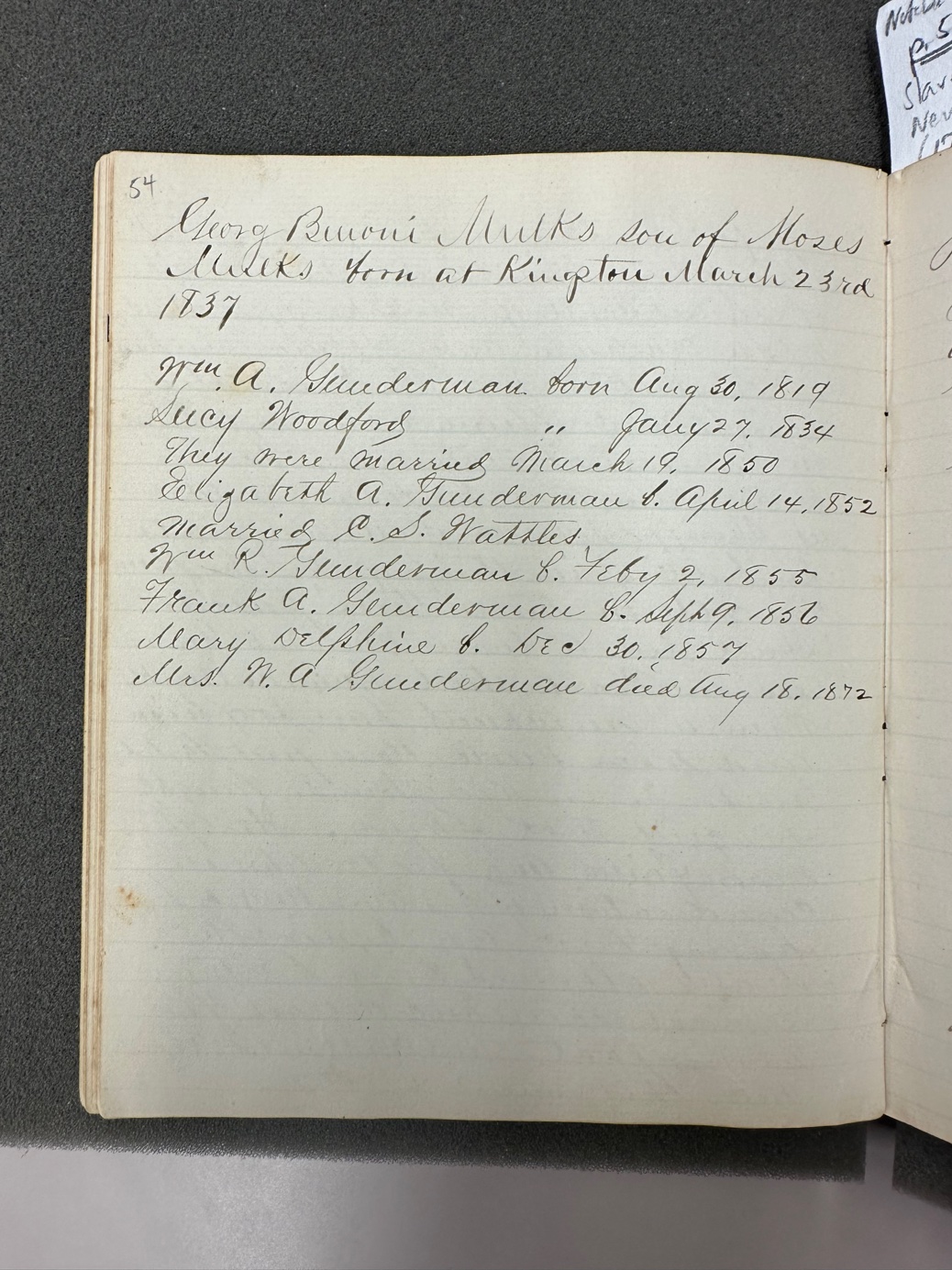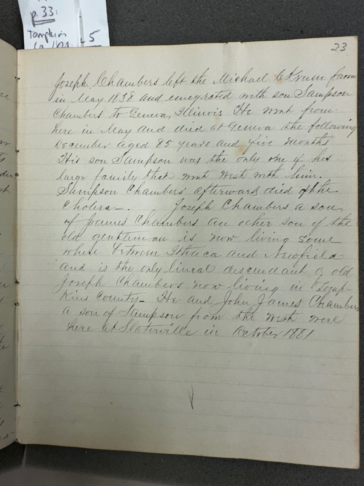 William Rounsville was born in the town of Caroline Tompkins county New York eleven miles from Ithaca the county seat the 27th day of February 1812. His parents were natives of Massachusetts. The town of Caroline was settled in a great measaure by New England people He was brought up under anti-Masonic influences his father being betterly opposed to Masonry. He went west in the spring of 1838 and located at St Charles, Kane County where he organized a Universalist Church. Removed to Chicago Ill in 1844. In 1863 + 64 he was one of the secretaries of the Illinois State Senate. He delivered an oraton on the 4th of July nearly every year since he resided in Illinois. He died about the year 1877. He was the only son of Wm Rounsvell the first Supervisor of Caroline who lived and died on the Strang farm now owned by Chauncey L. Wattle.