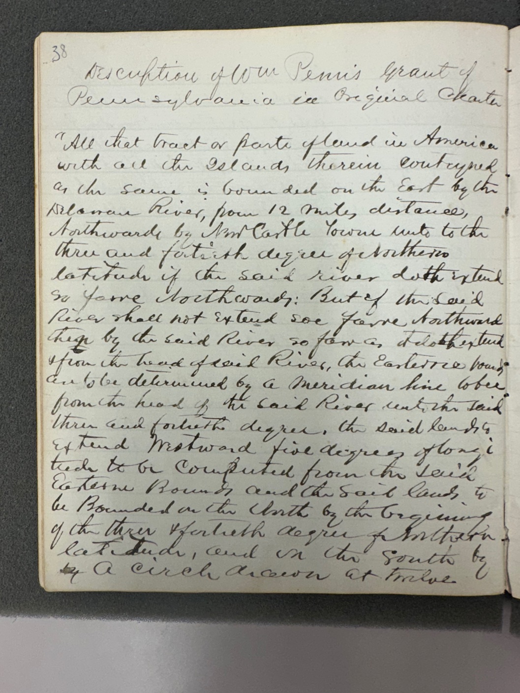 Description of Wm Penn's Grant of Pennsylvania in Original Charter