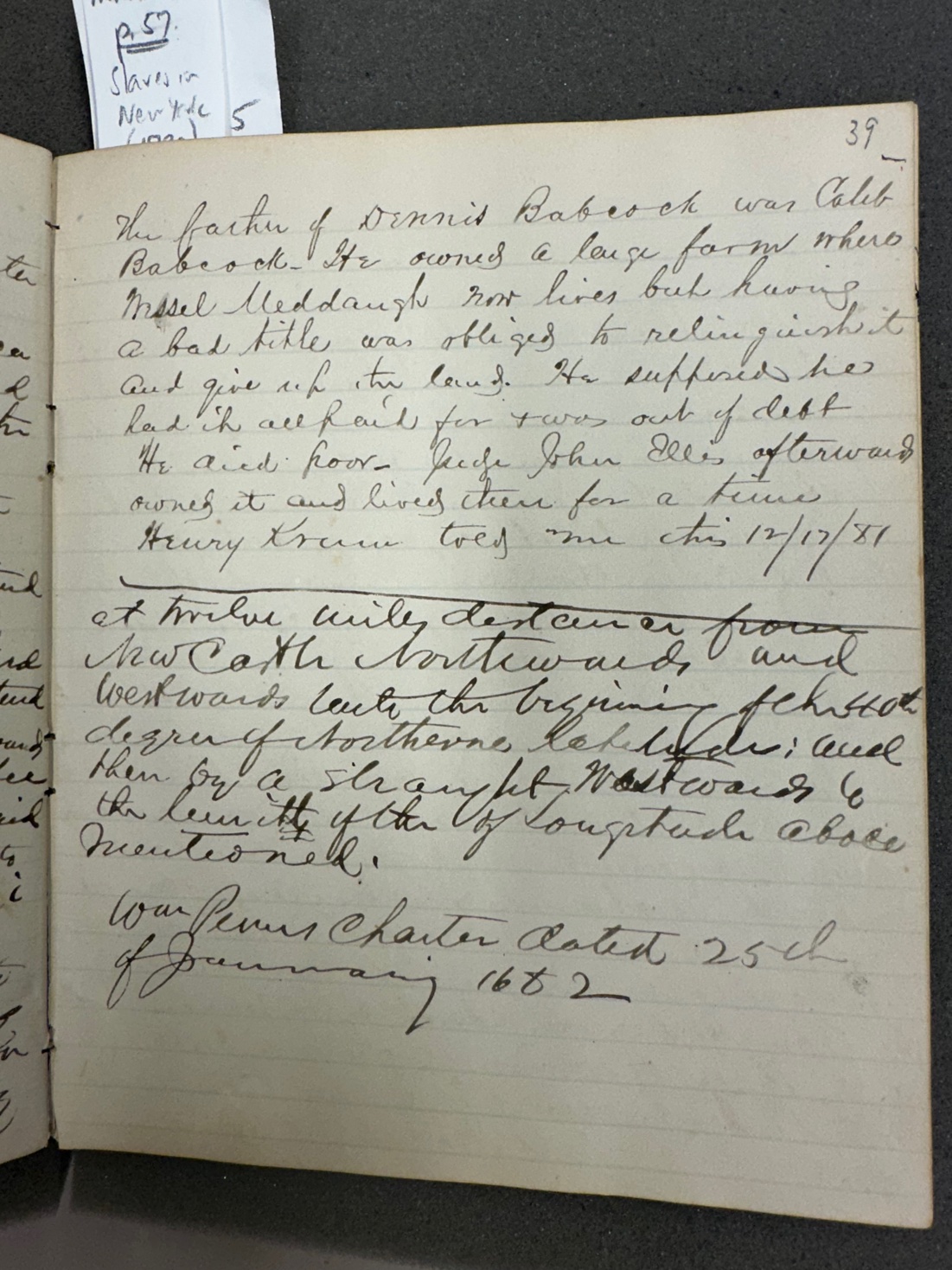 at twelve miles distance from New Castle Northwards and Westwards back to the beginning of the 40th degree of Northerne latitude: and then by a straight Westwards to the [?…] of the of longitude above mentioned.